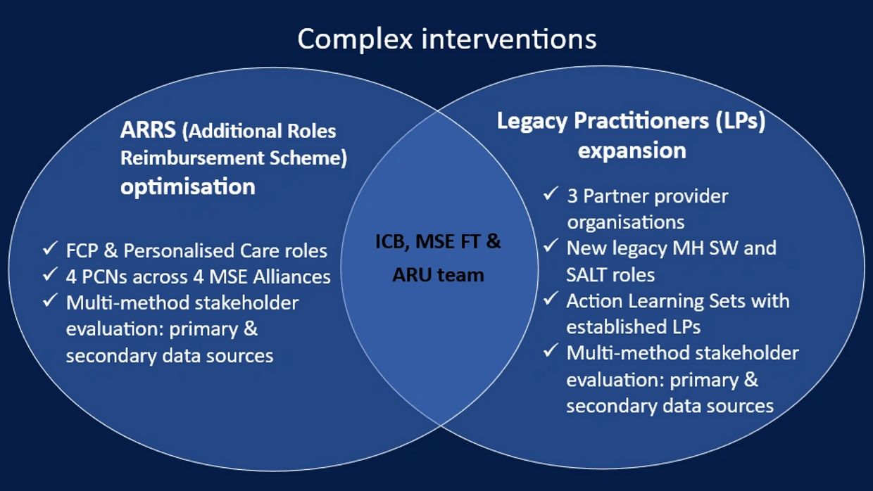 The Additional Roles Reimbursement Scheme was introduced in 2019 in primary care in England to support service provision. The scheme supports the recruitment of Allied Health Professionals to provide an enhanced range of healthcare services to support general practices (Baird et al, 2022). The original range of ARRS roles was extended to include other disciplines. The specific focus for this project is First Contact Physiotherapy and Personalised-care (Health and Wellbeing Coach, Care Co-ordinator, Social Prescriber) ARRS roles, as determined in consultation with system leaders.
